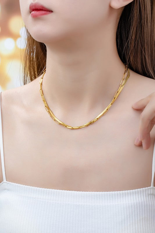 2 Layer Paper Clip And Herringbone Chain Necklace