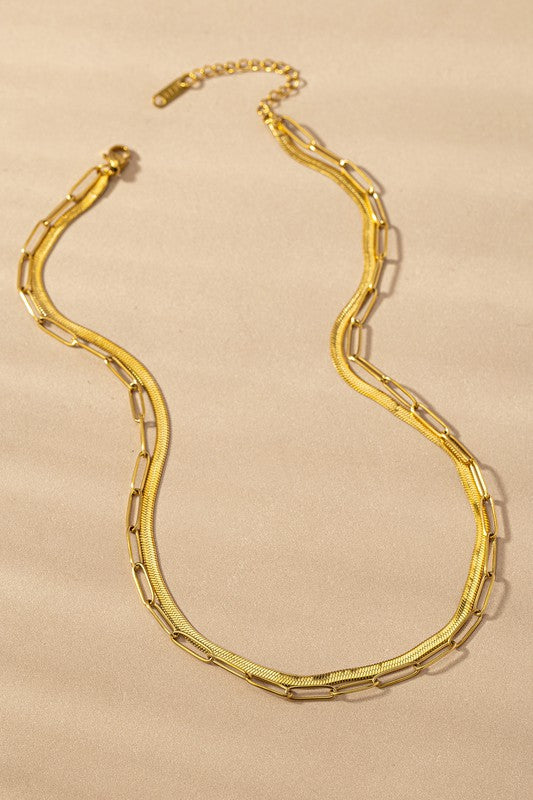 2 LAYER PAPER CLIP AND HERRINGBONE CHAIN NECKLACE