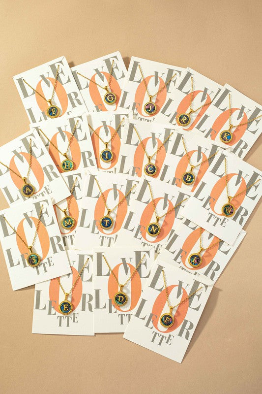 Abalone shell inlay initial pendant necklace