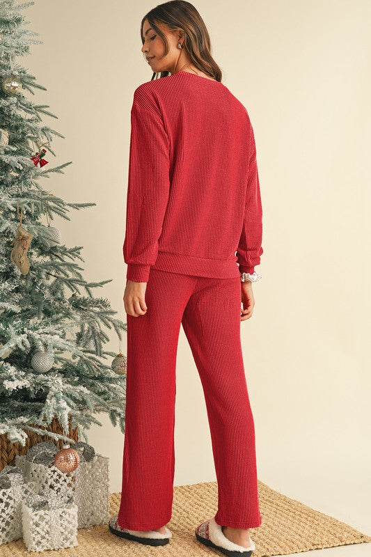 Crinkle Rib JOLLY PatternTop and Pockets Pants Set
