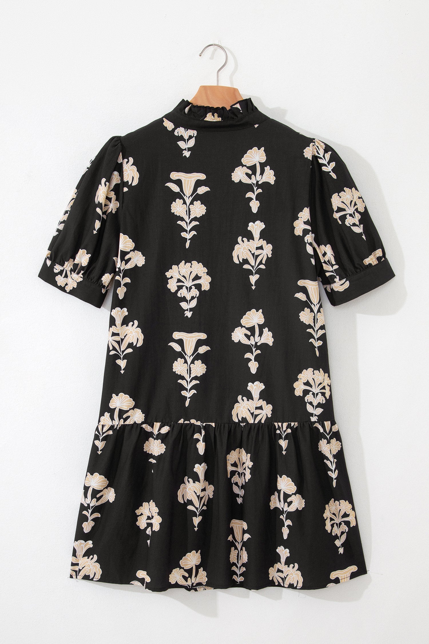 Floral Frilled V-Neck Puff Sleeve Mini Dress
