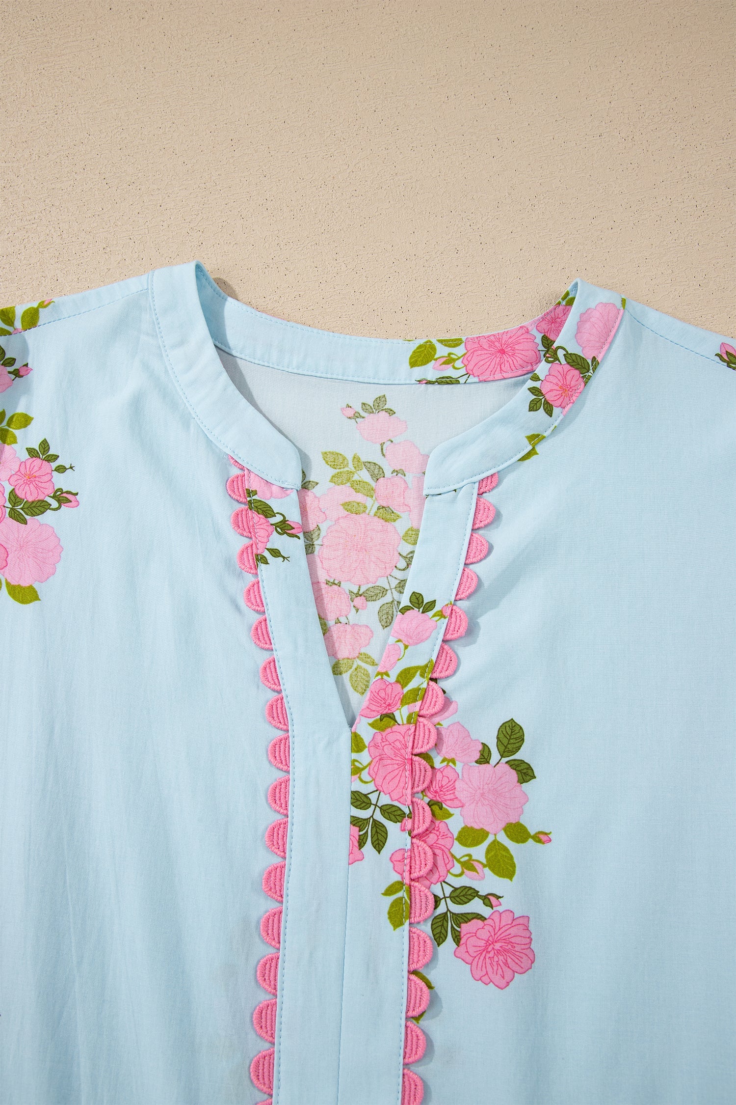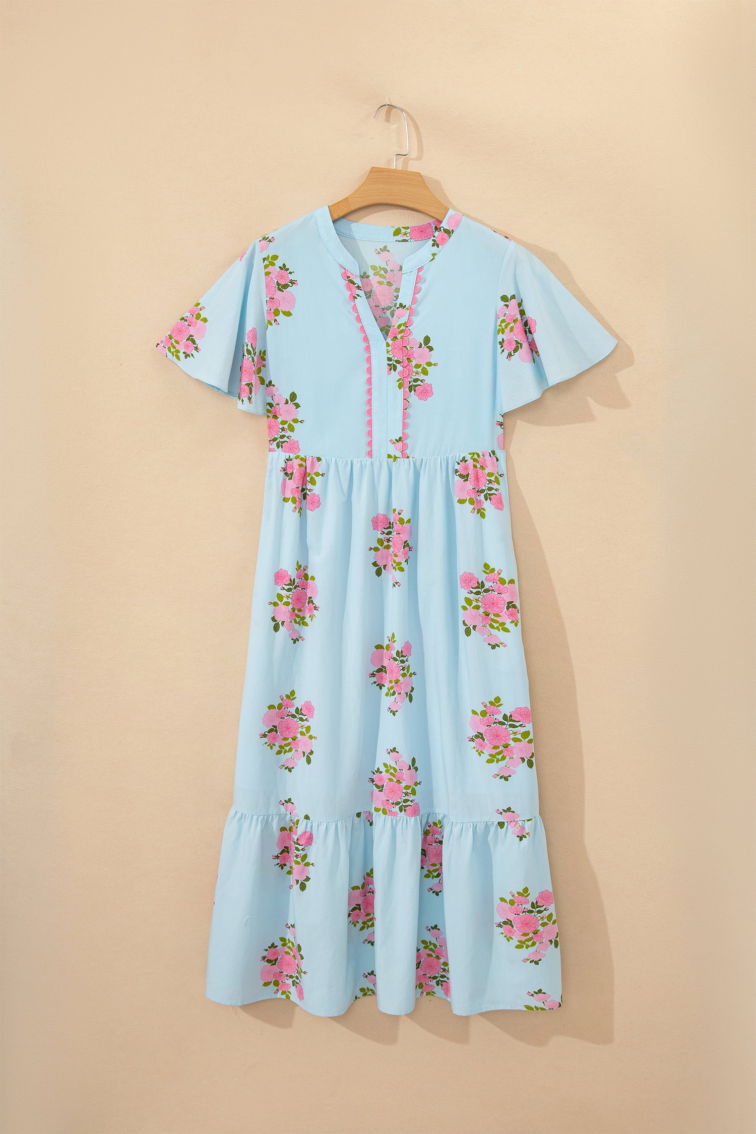 Floral Notched Neck Flutter Sleeve Maxi Dress