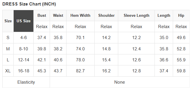 See size chart for approximate measurements