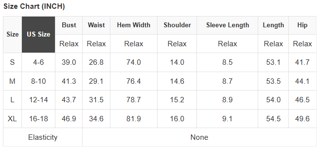 See size chart for approximate measurements