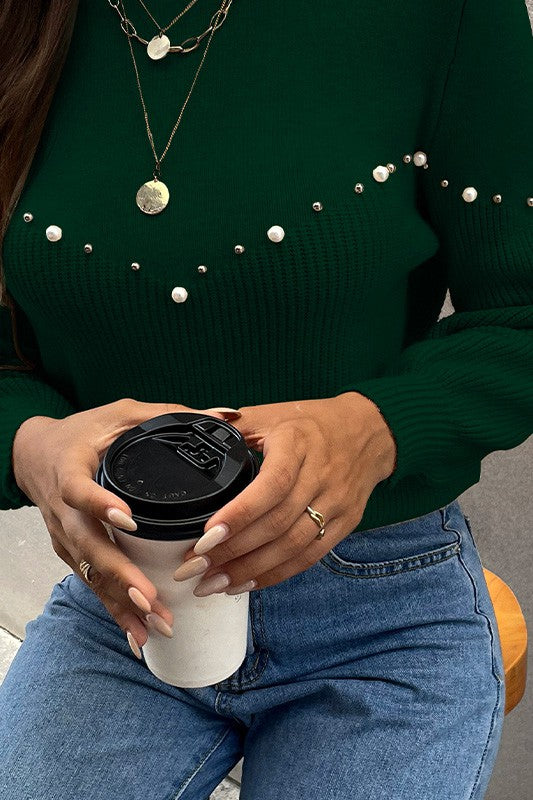 Green Essence Pearls Beaded Sweater | Modern Boutique Fashion