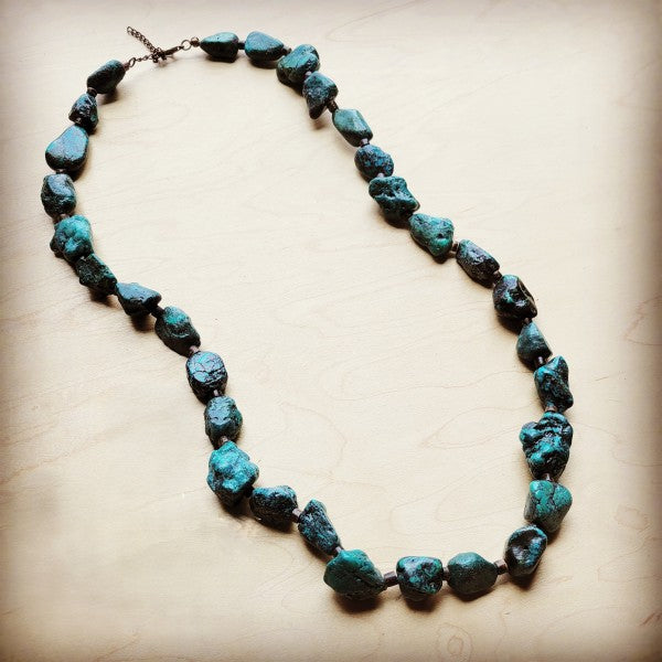 Experience the rustic beauty of our Genuine Long Natural Turquoise and Wood Layering Necklace. Handcrafted by skilled artisans, this boho-inspired piece exudes western charm. Elevate your style with the earthy tones of turquoise and wood, making this necklace a unique addition to your wardrobe.