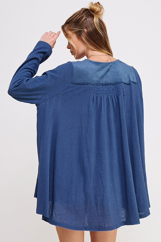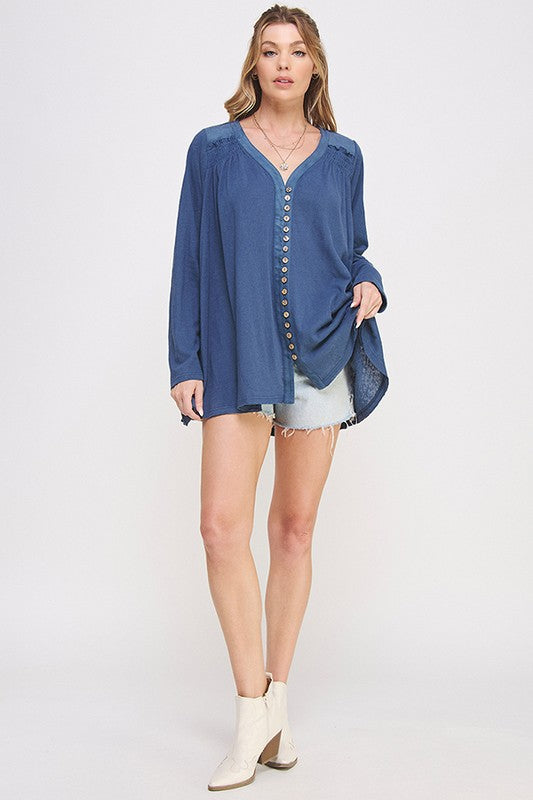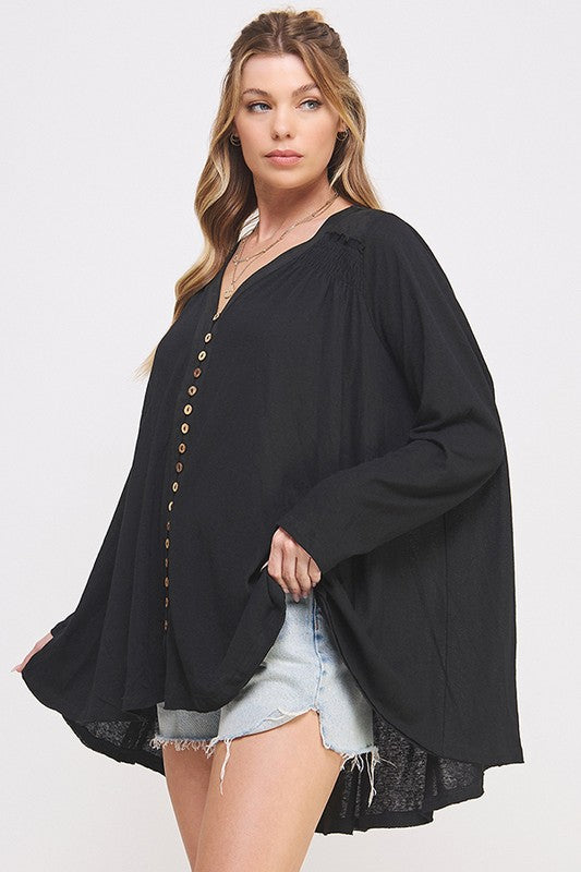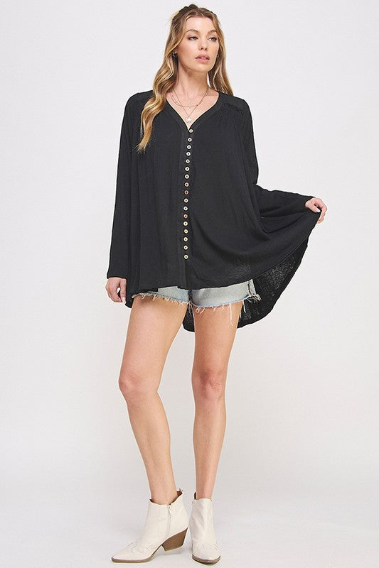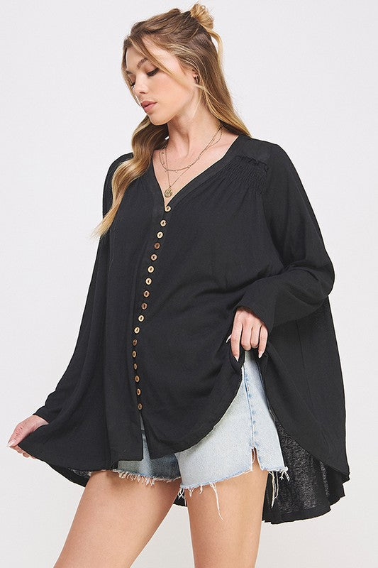 LONG SLEEVE V-NECK OVERSIZED BUTTON DOWN TUNIC