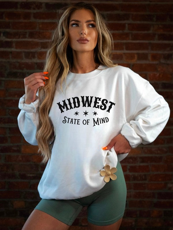 Midwest State Of Mind Graphic Crew Sweatshirt is your go-to for standout style and effortless charm. Designed with modern silhouettes and comfort in mind, this piece is perfect for brunches, date nights, and weekend strolls. Pair it with your favorite accessories to create a look that's uniquely you.