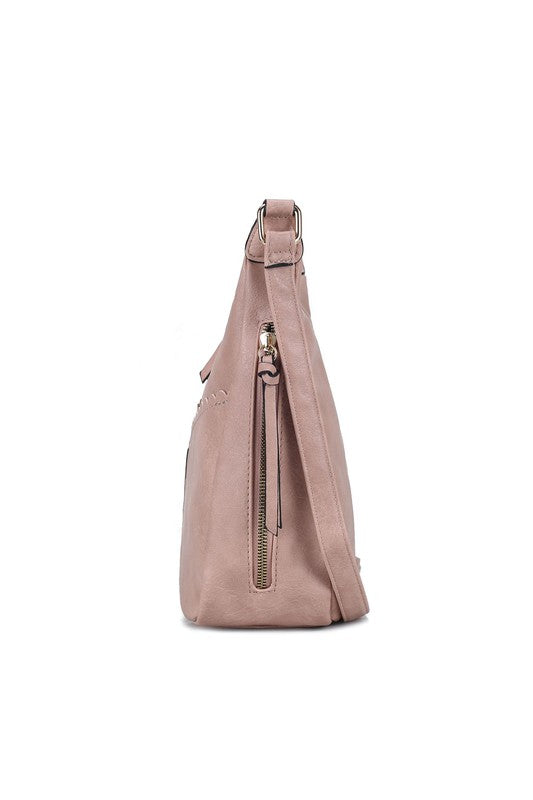 Exterior details: Exterior features two slip pockets and a vertical zip pocket on each side