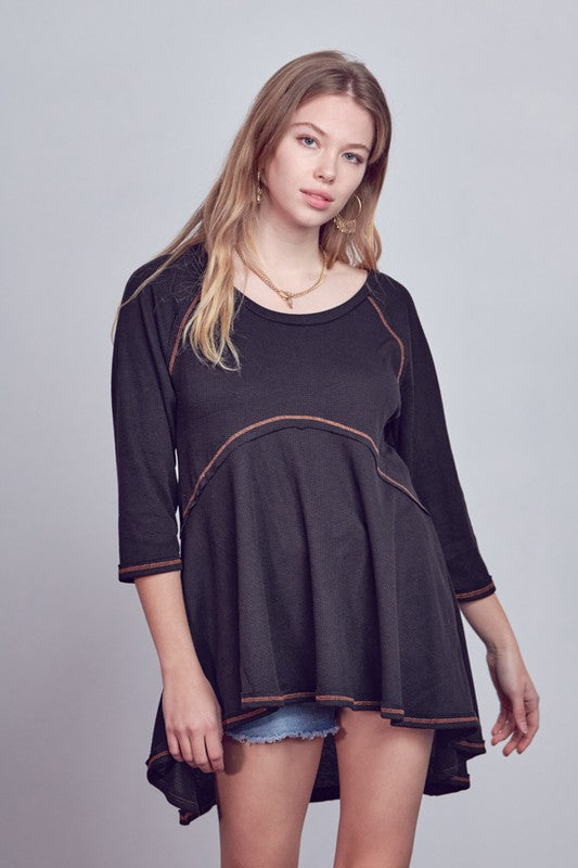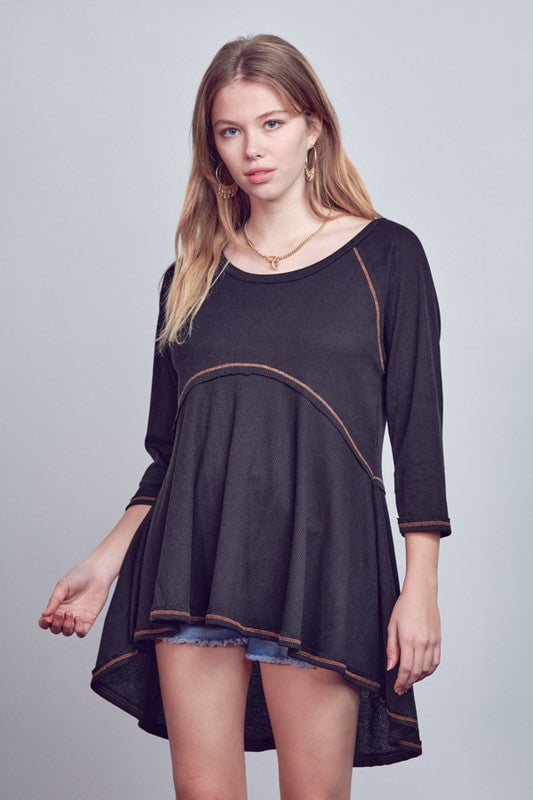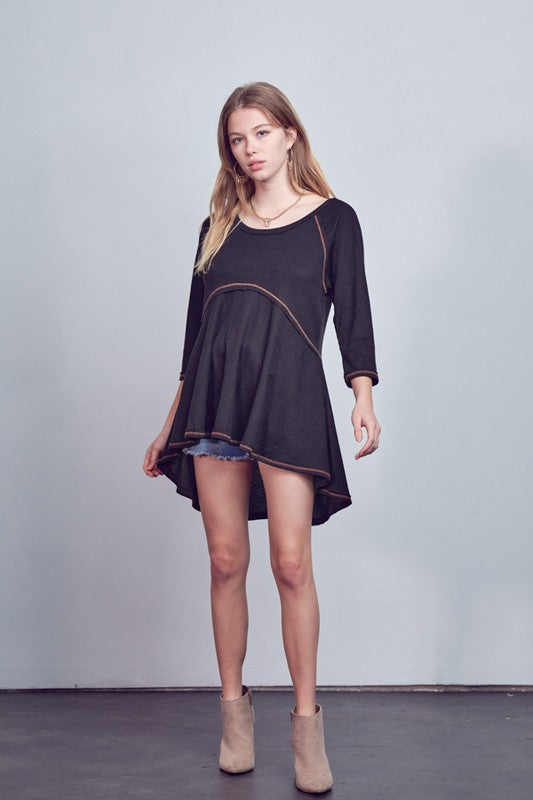 MID LENGTH SLEEVE HIGHLOW TUNIC TOP