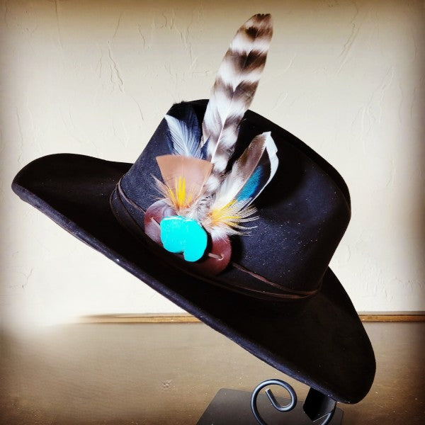 Turkey Feather&Turquoise Slab Hatband Choice Hat