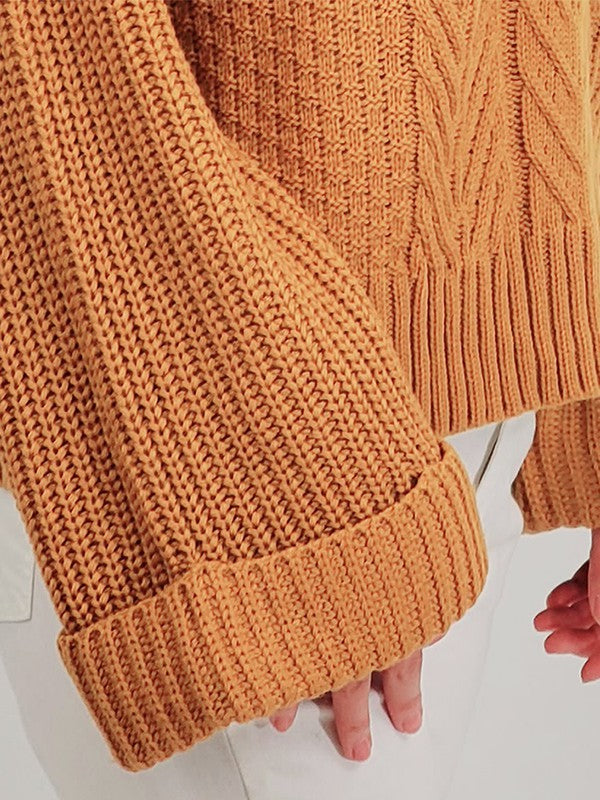 V Neck Bell-Sleeve Cable-Knit Oversize Sweater Top