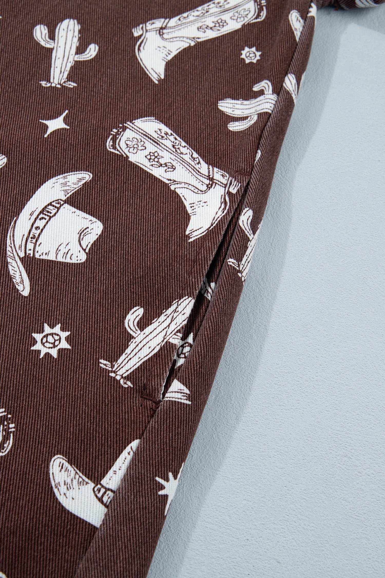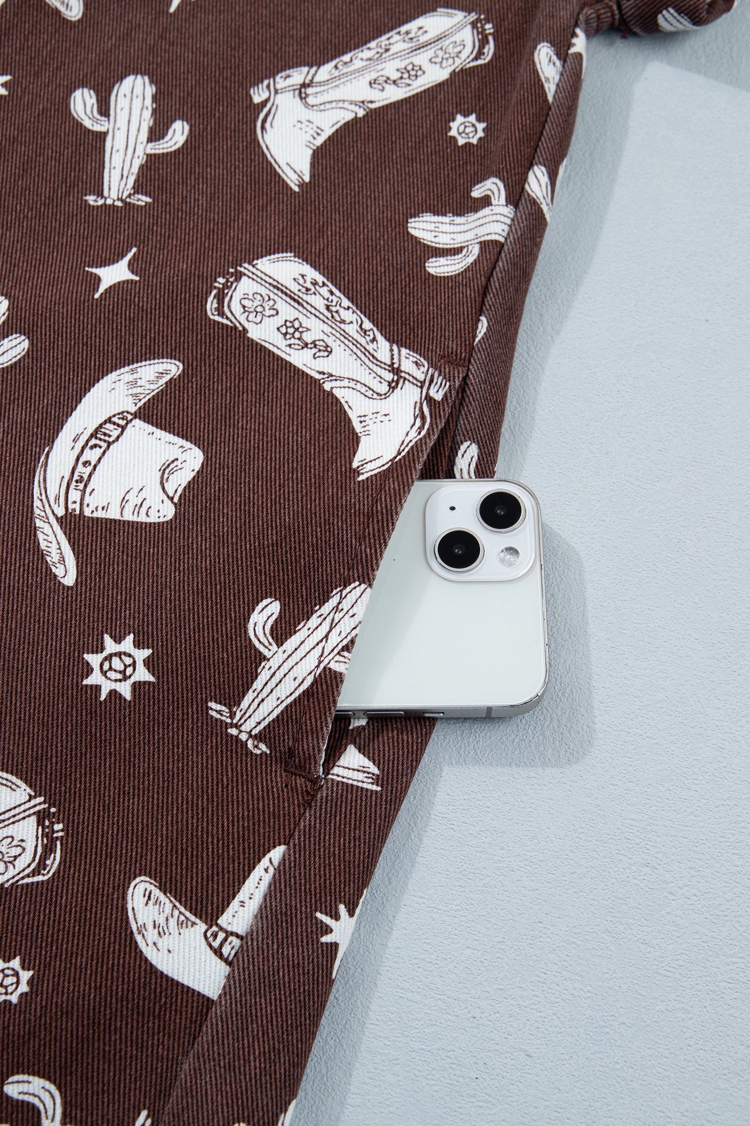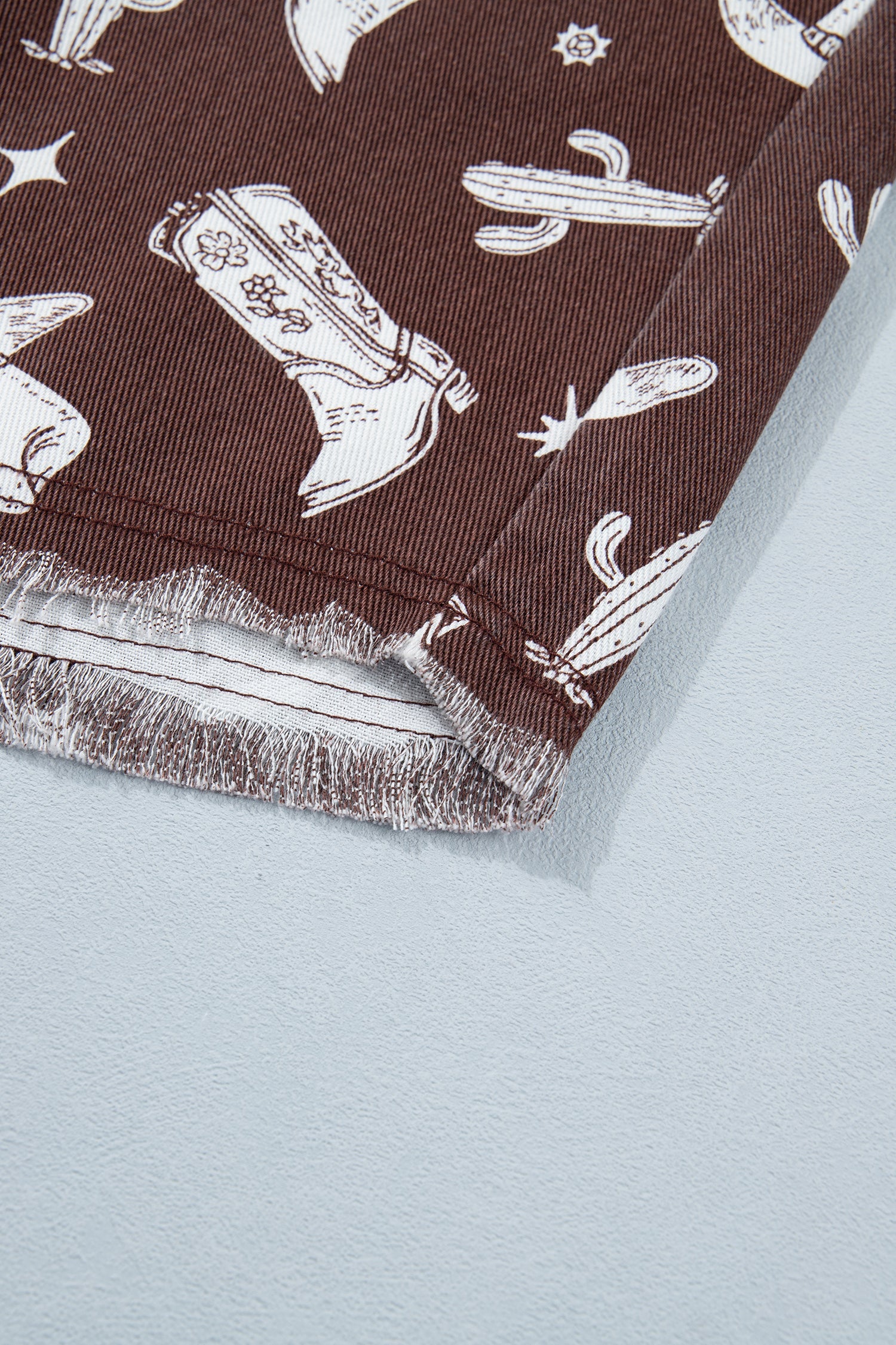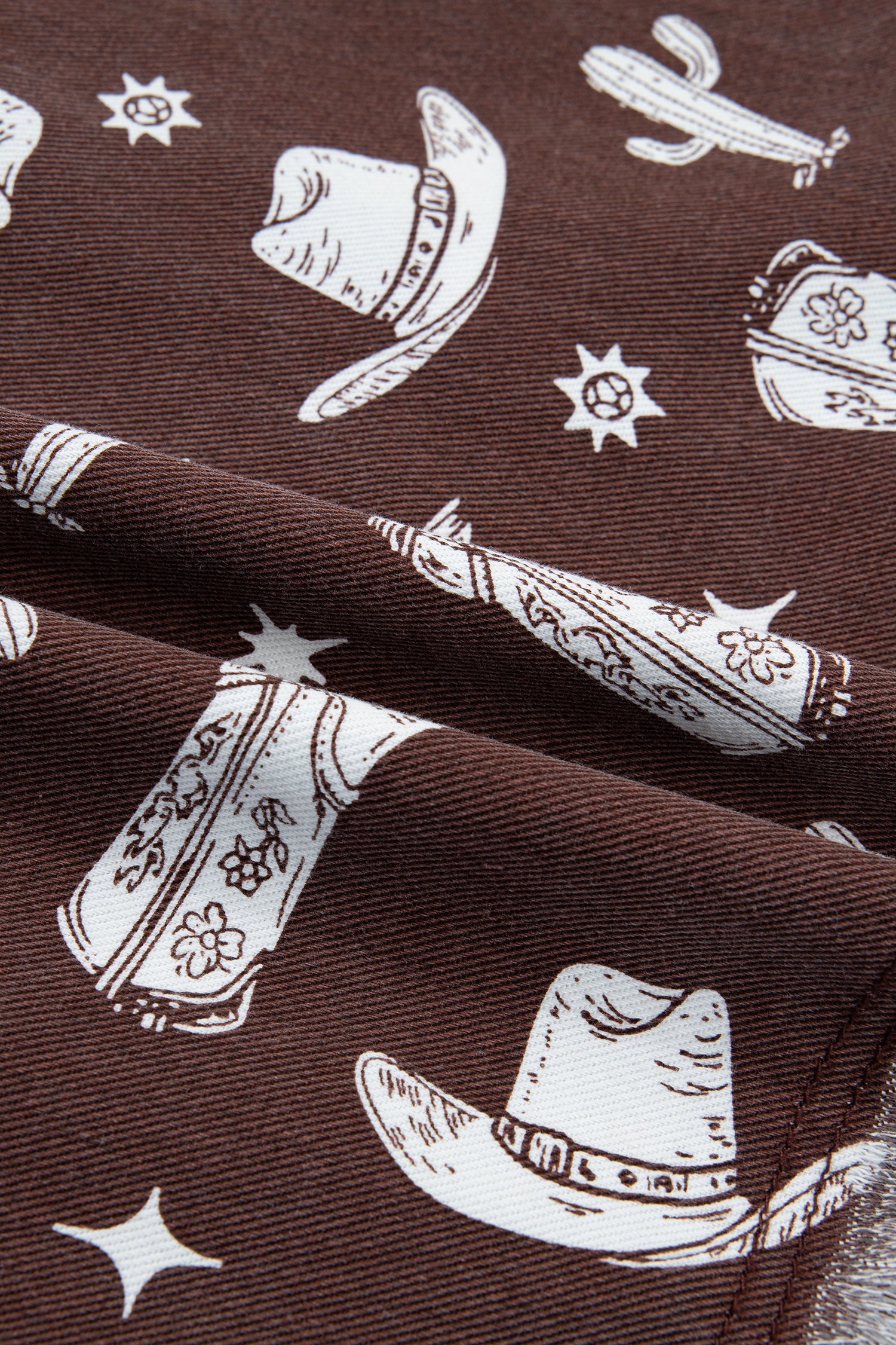 Saddle up in western style with this short denim dress, featuring an exclusive cowgirl hats, boots, and cactus print that brings authentic frontier flair to your wardrobe. Crafted from durable denim fabric, this timeless piece combines classic appeal with modern edge, literally. The raw edge design adds fashion-forward charm while the short sleeve button-down shirt style keeps it perpetually on-trend. Perfect for anyone who loves bold patterns and a touch of the wild west. Cotton/Polyester